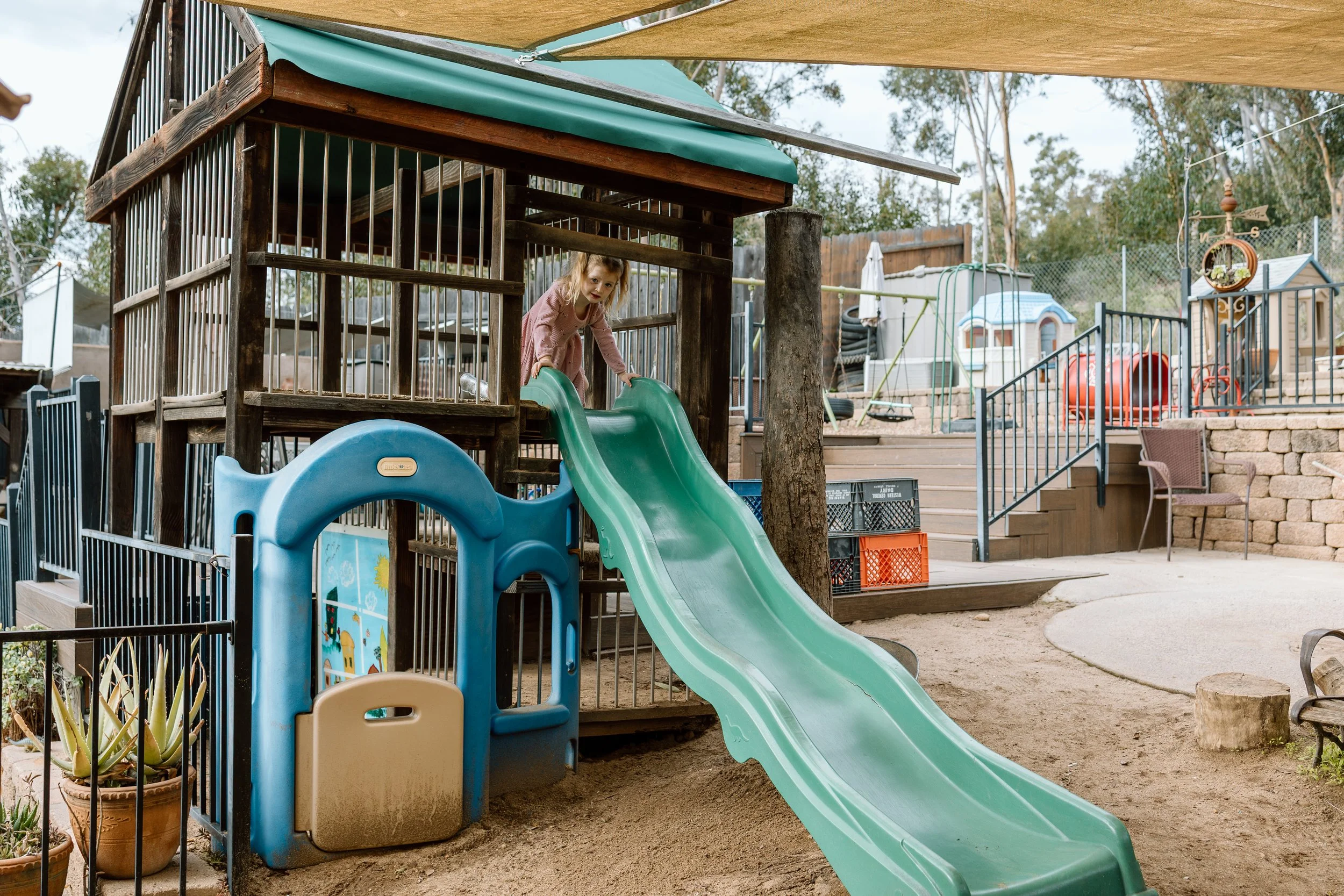 Outdoor play is an important part of every day. Children spend 80% of the time outside daily, engaging in movement, exploration, and nature-based learning appropriate to their age and the weather.